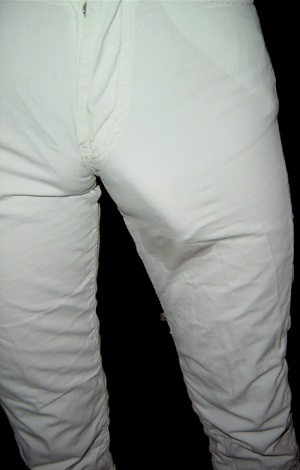 "Oh, I can see that! Those paper-thin white jeans make your lack of underwear quite obvious, you know? So, who is it for? Your girlfriend?"