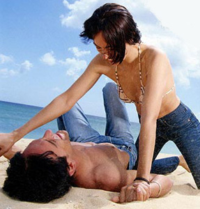 Jim followed her into the sea. Tim's already intense feeling of jealously only increased as he saw them kissing in the water. He could only imagine what was going on beneath the waterline as he watched. But when he saw them close their eyes as they clutched each other, there was little doubt left in his mind that they'd just experienced a seemingly overwhelming orgasm. As they stepped out of the sea, Jim's now limp cock was enough testimony that she'd milked him dry of his previously obvious arousal. Tim couldn't help wonder why Tanya was giving these guys such pleasurable relief while she'd kept him wanting for almost a week. But as she came back to where he was sitting, she again turned her attention to him: