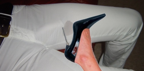 Many men are desperately attracted to my extensive range of high-heel stilettos. I can tell right from the way they look at my shoes that they have some kind of a foot fetish. And I love to take full advantage of their little weakness to tease them even further. I work part-time as an escort, and it gives me many opportunities to experiment with my little game. The other day, I answered a call from a customer who had insisted on my wearing stilettos. I decided to put on the whole show for him. A black leather camisole and ultra mini, along with my sexiest leather sandals. Their 5" high stiletto heels always have a tremendous effect on the male gender, and he was no exception. His eyes were literally glued upon them as I ushered him into my lounge. As we stood facing each other, I immediately noticed the rapidly rising bulge forming at his crotch. He was wearing an outrageously tight pair of flimsy white cotton jeans. The encasing fabric did everything but hide the clear outline of his cock and balls, trapped at the top of his thigh.